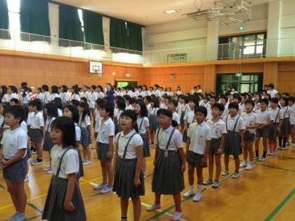 6月26日(金)今日の児童集会は音楽集会でした。 「子どもの世界」という歌を全校で歌いました。はじめに学年ごとに決められたパートで練習し、最後に全校で二部合唱をしました。どの学年もしっかり声が出ていてとても楽しい集会になりました。
