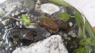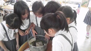 6月27日(金)3時限目が終わるとすぐに2年1組の子ども達が「ザリガニが脱皮した!」と言って職員室に飛び込んできました。教室に行ってみると確かに脱皮しています。ザリガニは脱皮した殻からカルシウムをとるというのでそのままにしています。脱皮した様子を見た子ども達はとても興奮して喜んでいました。