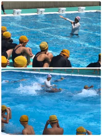 多目的室でのお話の後、実際にプールでもご指導いただきました。