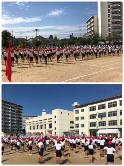 全校で、運動会の全体練習に取り組みました。