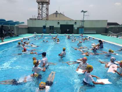 7月11日(金)4・5・6年生が着衣泳をしました。水慣れをした後に体操服を着て、ビート板やペットボトルを使ってラッコ浮きなどを体験しました。夏休みまであと1週間。自分の命は自分で守ることができるよう、これからも海や川などでの水難事故に十分注意してほしいと思います。