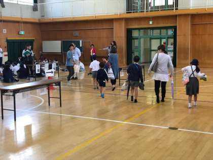 10:55より、「緊急時引き渡し訓練」をさせていただき、多くの保護者の皆さんにご協力いただきました。