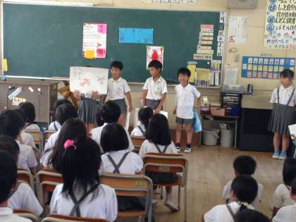 7月16日(水)2年1組では1年1組を招待してザリガニランドを開きました。今まで大切に育ててきたザリガニについて調べたことなどを発表したり、実際にさわってもらったりしました。クイズなどもあり、1年生は大喜びでした。2年2組でも1年2組を招待する予定です。