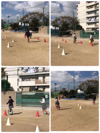 2時間目後の休み時間に、3・4年生の一輪車大会があり、それぞれの目標にチャレンジしました。
