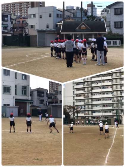 オリックス・バッファローズの選手OB(塩崎選手・大久保選手)やソフトボールの金メダリスト(乾選手)に来てもらって、「ティーボール」に取り組みました。