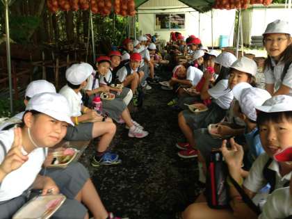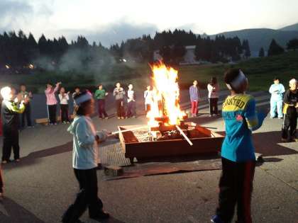 7月21日(月)〜23日(火)5年生は、兵庫県養父市の鉢伏高原へ林間学習に行きました。朝、7時に学校に集合しバスで現地に向かいました。思っていたよりずいぶん早く到着したのでさっそく高原を散策しました。開舎式、避難訓練の後、お弁当を食べて魚つかみをしました。夜は、キャンプファイアーです。AKB48のダンスでとても盛り上がりました。晩ごはんのかも鍋もとてもおいしかったです。