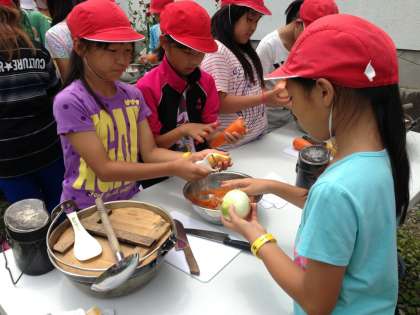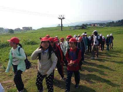 林間学習2日目は、まず鉢伏山登山です。きびしい山道でしたが、みんなで励まし合って全員登頂に成功しました。昼は飯ごう炊さんです。飯ごうでごはんを炊き、カレーも作りました。どのグループもとってもおいしくできあがりました。おこげもおいしかったです。昼から焼き板工作をして、夜はナイトハイクをしました。ホタルも見ることができました。夜空に打ち上がる花火も最高でした。