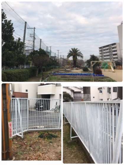学校の南西側のフェンスの塗装をしてもらってます。ご注意ください。