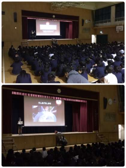 今朝は、給食委員会の皆さんが、学校の給食ができるまでを画像とクイズで紹介してくれました。
