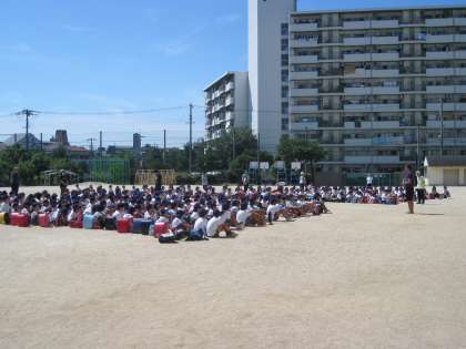 7月10日(水)5時間目に分団会を行い、夏休みのくらしについて話し合いました。それから、運動場に集合し、担当の先生から登下校時に気をつける2つのことについてお話を聞きました。その後、地域別に集団下校を行いました。