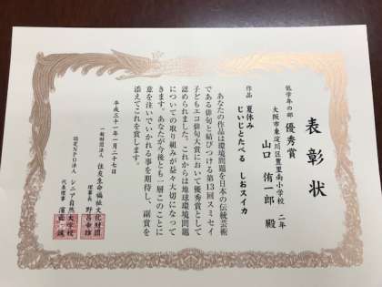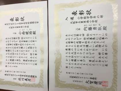 この他にも、読書感想画の表彰状を8人の児童に伝達しました。