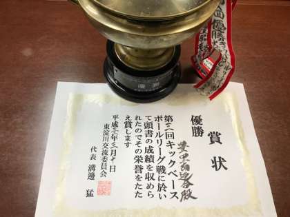 昨日の児童朝会で、紹介した、表彰状