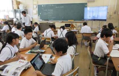 今日は消防士の仕事について調べています。子どもたちが自ら調べて考える授業、いわゆる探究的な社会科の学習を目指していますが、なかなか難しいものです。