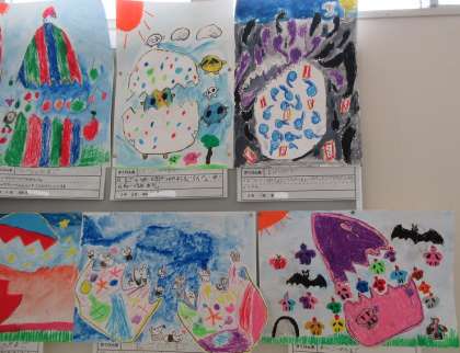 「ふしぎなたまご」というタイトルで、色鮮やかなたまごからいろいろなものが飛び出しています。