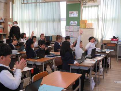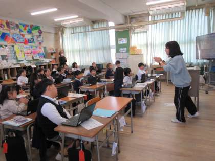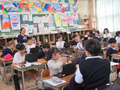 パソコンを使っているので、2年生でも簡単にリズムを作って、それをみんなで共有することができています。