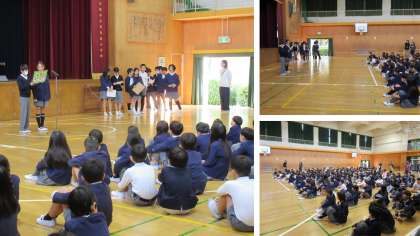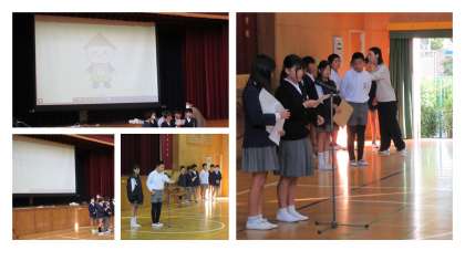 そのあと、委員会からの呼びかけや、お祝いの会の準備委員会から、40周年記念の学校の新しいキャラクター決定の発表などがありました。