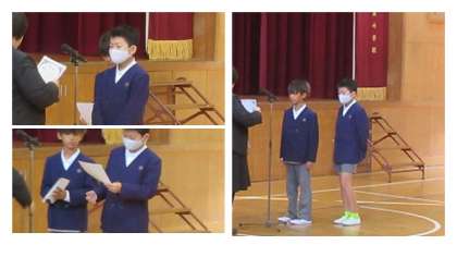 また、夏休みの自由研究の表彰を行いました。5年生の児童が、緑豆もやしの栽培についての研究と、雲の発生についての研究で表彰されました。