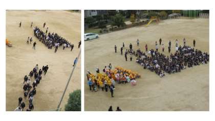 子どもたちは先生の指示のもと、とてもすばやく避難することができていて、1次避難(運動場)も、2次避難(校舎の4階)も、どちらも3分程度で避難を完了することができました。