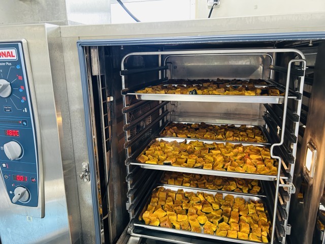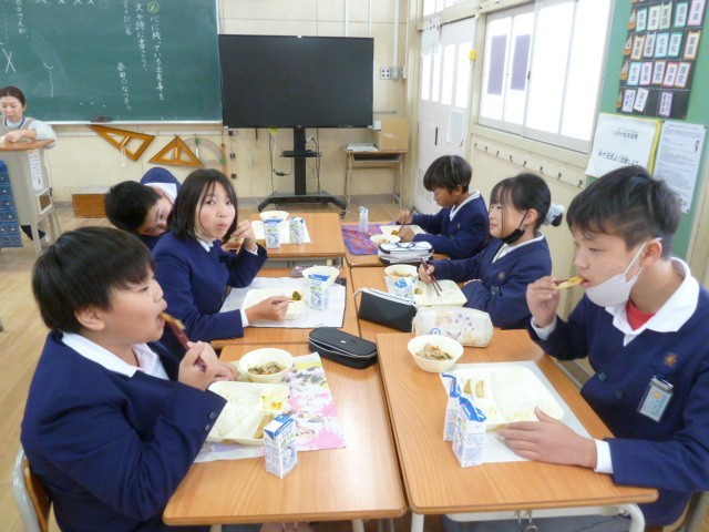 今日12月22日は、「冬至の日」です。冬至は、一年のうちで最も昼が長く、夜が長い日です。日本では昔から、「ん」がつく食べものを食べると運が良くなるといわれ、「ん」が二つ入るとさらによいとされ、その一つがかぼちゃ(なんきん)です。給食では焼いたかぼちゃに砂糖やしょうゆで作ったみつをかけて食べました。