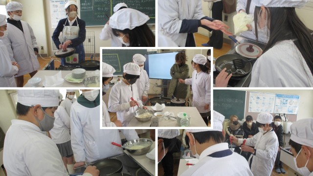 6年生は、小学校最後の学習参観です。グループで協力して、わいわいと楽しそうにホットケーキやポップコーンをつくっていました。