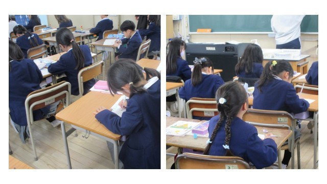 「さすが2年生!」と声をかけると、みんな集中してノートを書いていました。