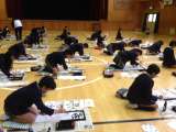 1月9日(金)6年生は、5.6時限目に講堂で書き初めをしました。はじめに試書を...
