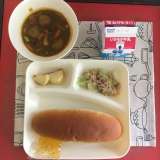 今日の献立は、鶏肉のオイスターソース焼き、糸寒天のスープ、チンゲンサイとコーンの...