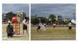 5年生のリレーです。 チームみんなで一つのバトンをつなぎます。 バトンパスがう...