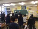 12月13日(火) 5限目 東淀中学校の英語の先生(山本先生)に、6年1組で授...
