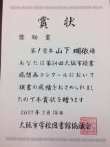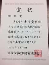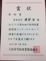 2月27日(月) 今朝の児童朝会で、「第34回大阪市読書感想画コンクール」で受...