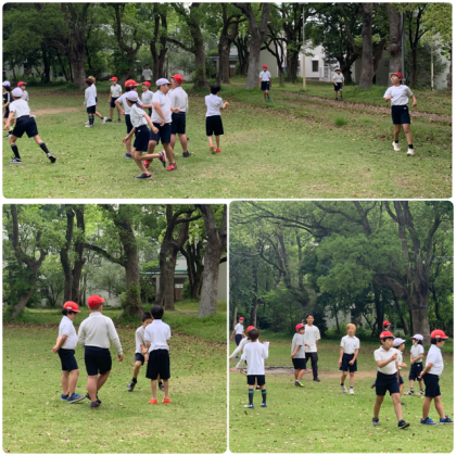 雨もやんで、日差しもなく、遊ぶのにはいい感じです。みんな思いきり遊んでいます。