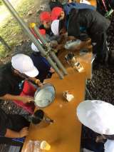 三日目朝、快晴V(^_^)V 朝会のあと、みんなで お世話になった高原のゴミ拾い...