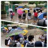 今日は一学期三回目の避難訓練です。 風水害に備えて、台風が近づいてきているので、...