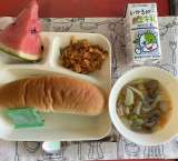 今日の献立は コッペパン 牛乳 パエリア ウインナーとキャベツのスープ すいか ...