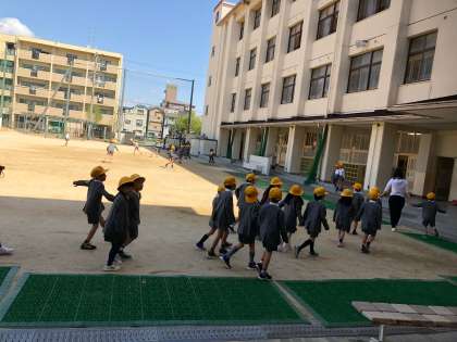運動場では新しい担任の先生と元気いっぱい走り回る子どもたちの歓声が響いています。あれあれ一年生は先生の後について、保健室に向かっています。きっと出欠調べを持っていくところを確認しているのでしょう。毎日たくさんのことを学んでいます。