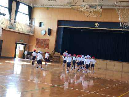 3年生は体育館で「猛獣狩りに行こうよ」をしていました。楽しみながら、体を動かして、いろいろな運動に親しんでいます。
