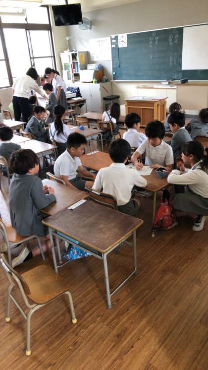 今日の2時間目に、縦割り班編成を行いました。全学年の子どもたちがそれぞれの班に分かれて、これからの計画を立てました。班のみんなの自己紹介をしたり、5月28日に行く全校遠足の遊びを決めたりしました。今年一年、みんなで仲良く活動してくれると思います。高学年の人たちは、低学年の人たちをリードしてがんばっています。