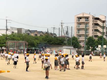 15分の休憩時間にはたくさんの子どもたちが運動場で遊んでいます。みんな元気いっぱいです。学級や学年で遊びの工夫も見られます。