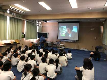 3時間目に区役所の方に防犯についての学習をしていただきました。ハラハラする映像を見た後、事件に巻き込まれそうな危ない場面では、どうすればいいかを学びました。最後に「つみきおに」の合言葉を聞きました。「つ」は、ついていかない、「み」はみんなで一緒に行動する、「き」はきちんと伝える、「お」は大声を出す、「に」は逃げるです。
