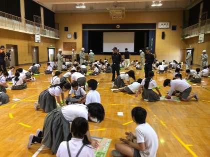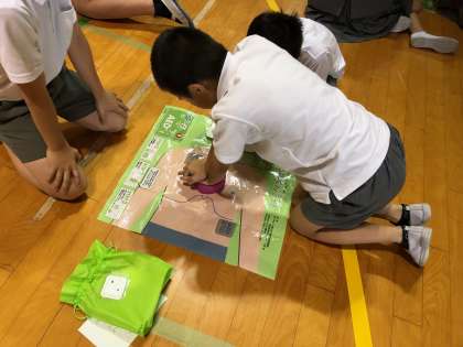 普通救命教室では、説明のあと、実際に器具を使って講習しています。ずいぶん慣れて上手になってきました。