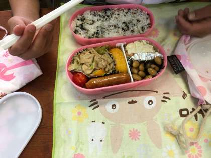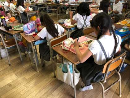 今日は全校遠足が雨で延期になりました。お昼は各教室でお弁当タイムです。みんなで輪になっている学級もあり、楽しくお弁当をいただいています。ご家庭では、朝早くから、ご用意いただきありがとうございます。子どもたちはみんな、とてもうれしそうに食べています。