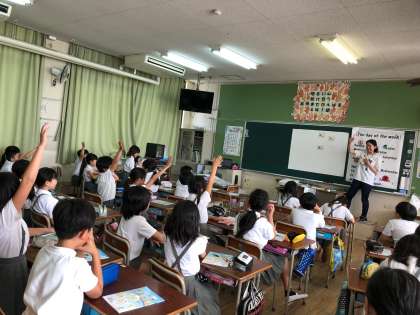 4年生は、曜日の学習をしていました。月曜日から日曜日まで、問題をしながら、積極的に学んでいます。5年生は色の名前を学んで、ビンゴゲームをしていました。6年生は本格的に自己紹介を英語で発表していました。