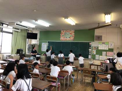 全校遠足に行けなかったため、4時間目に集まって、班ごとに工夫した遊びをしています。どの教室からも明るい笑い声が聞こえてきます。