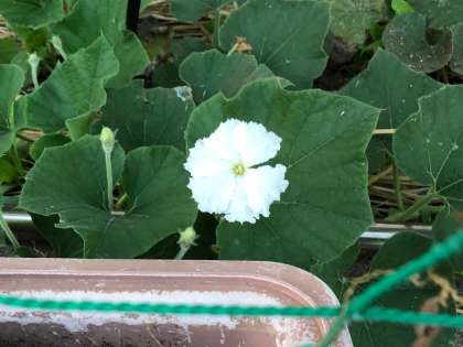 4年生が育てているひょうたんに花が咲き始めました。夕方に開いて、朝にはしぼんでしまいます。子どもたちがいない頃に咲くので、写真を撮ってみました。