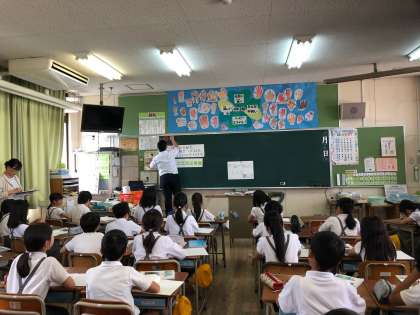 4年生では、メンター研修として、算数の授業研究会を行いました。2桁割る1桁の割り算のしかたをみんなで意見を出し合って、解いていきました。メンター研修は若手の先生たちの学び合う場です。教育センターから、指導の先生も来ていただいて、みんなで学んでいます。