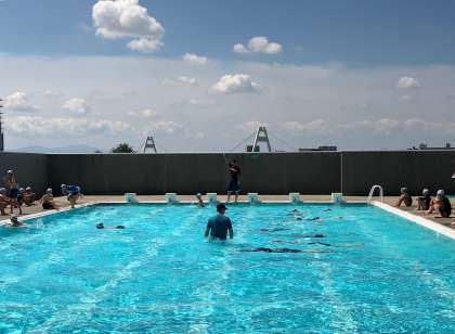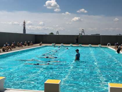 6年生は今日初めてのプール水泳です。さすがに水に慣れていて、蹴伸びの形もきれいです。今年もしっかりと泳力を伸ばしてほしいです。