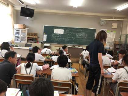 6年生は、角柱や円柱の体積の求め方をもとにして、違う形の立体の体積も求められることを学習していました。子どもたちからいろいろな方法が出てきて、とても活気のある学習になりました。