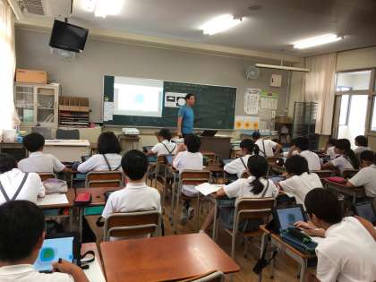 6年生では、タブレットパソコンを購入使って、東京ドームのおおよその広さを計算する学習をしていました。正方形や台形、円などを上空から撮った写真に重ねると辺や半径などの長さが出てきます。それを使って計算して面積を求めると実際の面積に近い値を出した子どももいました。