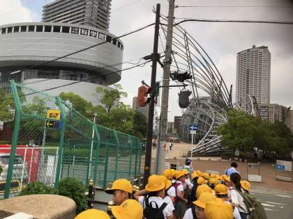 4年生が大阪市立科学館に社会見学に行きました。最初にプラネタリウムを見ました。初めて綺麗な星空を見た子どもたちから歓声が上がりました。リニューアルした館内は涼しくて、とても気持ちよく見学できました。