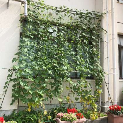 暑くなってきました。4年生が観察しているひょうたんは、みるみるうちに伸びてすてきな緑のカーテンになっています。
